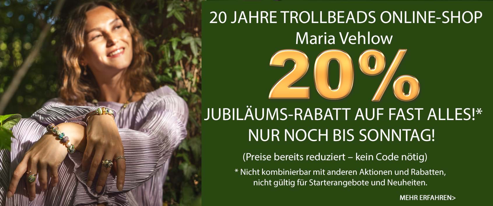 Wir feiern 50 Jahre Geschichten. Dieser Bead hat eine schlanke, münzähnliche Form und ist an der Seite mit den Jahreszahlen 1976 und 2026 sowie dem Trollbeads…