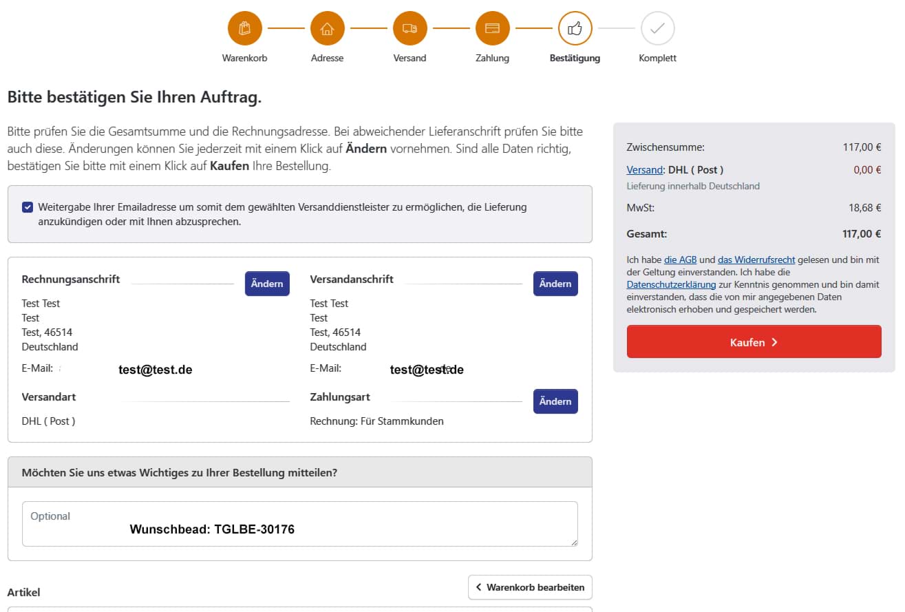 €55) direkt in das Textfeld während des Bestellvorgangs ein.(Siehe Beispiel