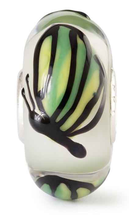 und moosgrüne Nuancen verschmelzen unter zarten Schmetterlingsflügeln. In kunstvollem Glas von Hand gefertigt,