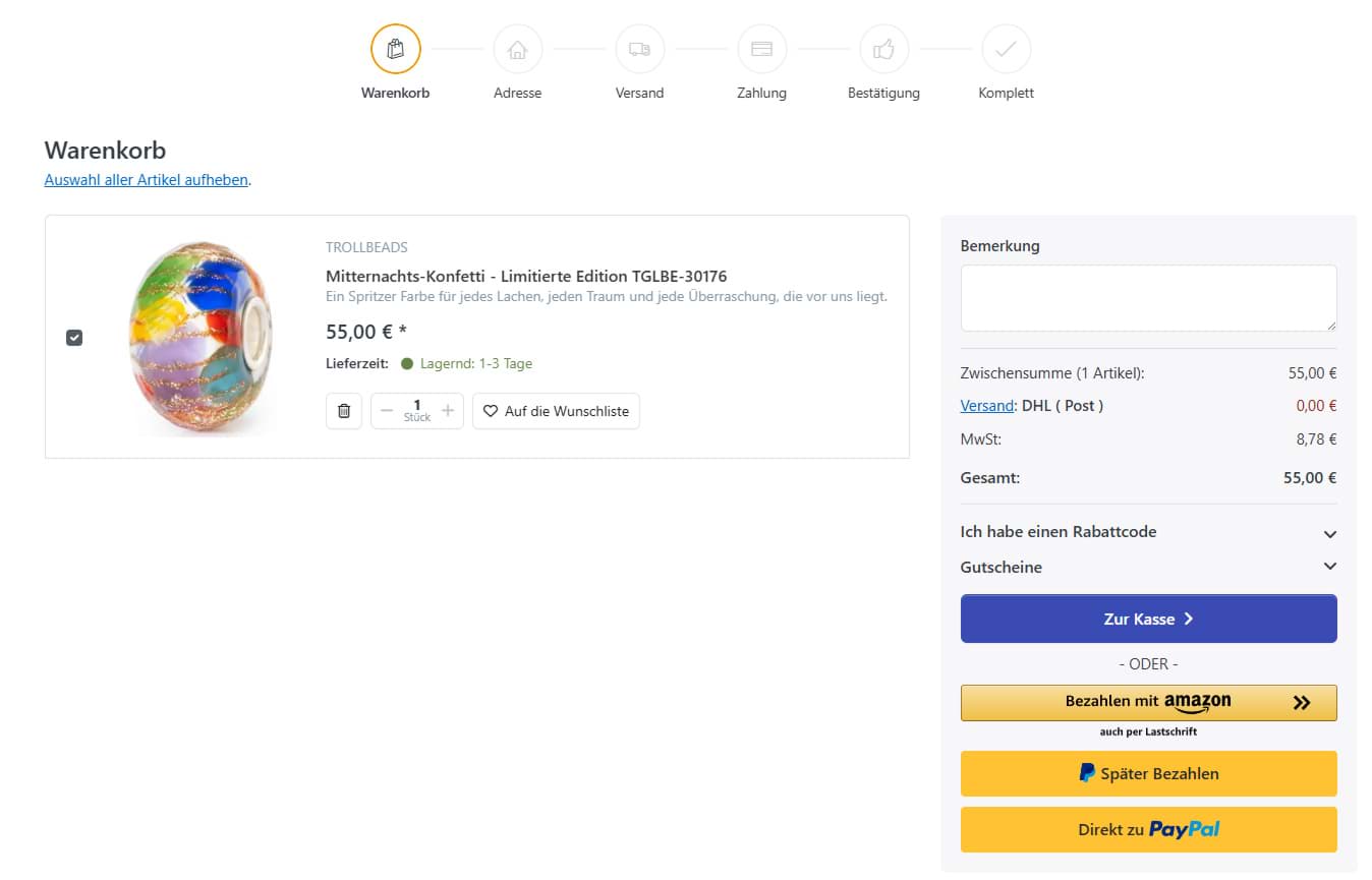 Das Feld, ich habe einen Rabattcode befindet sich im Warenkorb.
